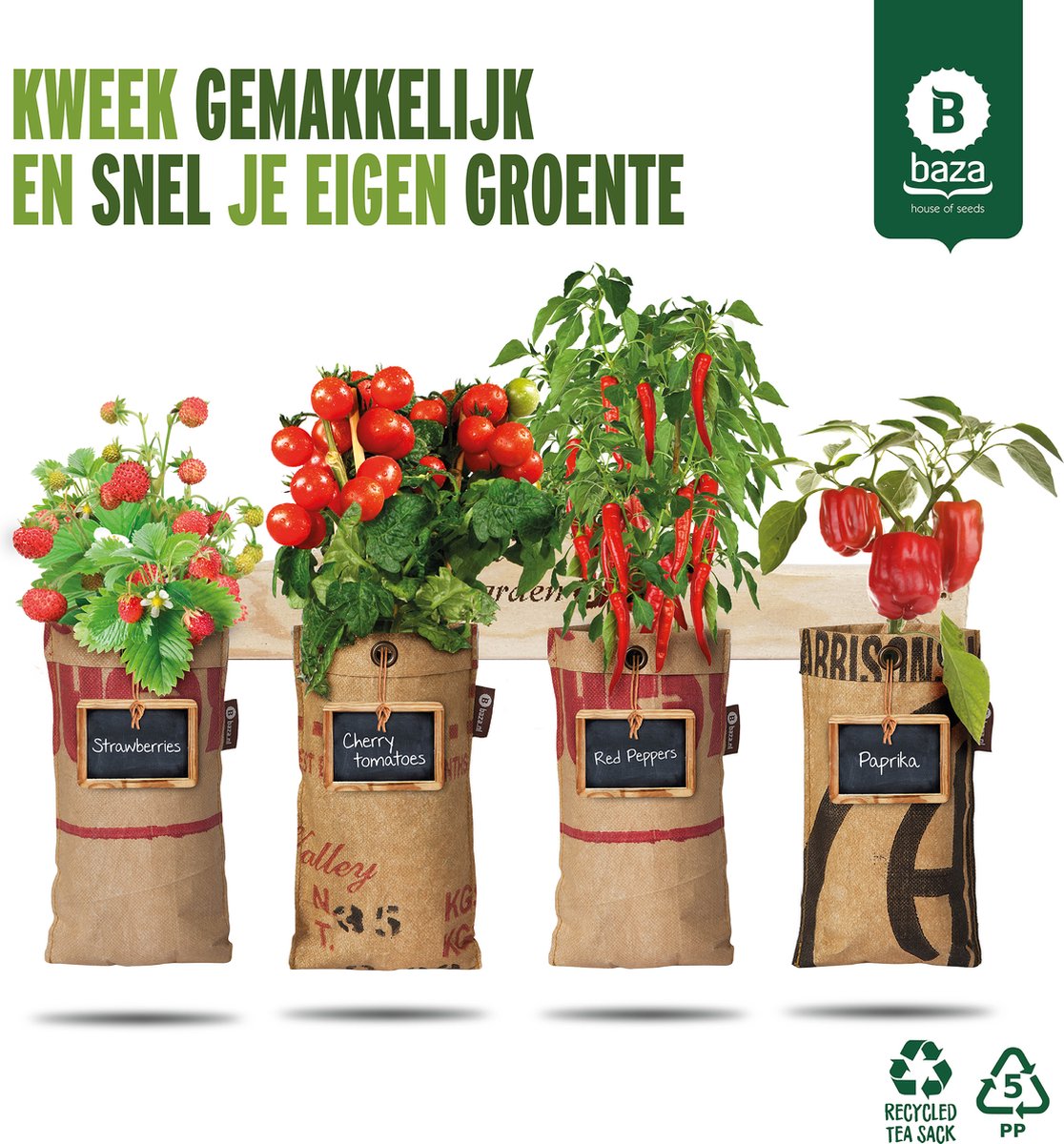 De 4x Hangtuintjes moestuin kweeksetten Nu Met Gratis FSC Houten Hangrekje bloeit voorjaar en zomer.