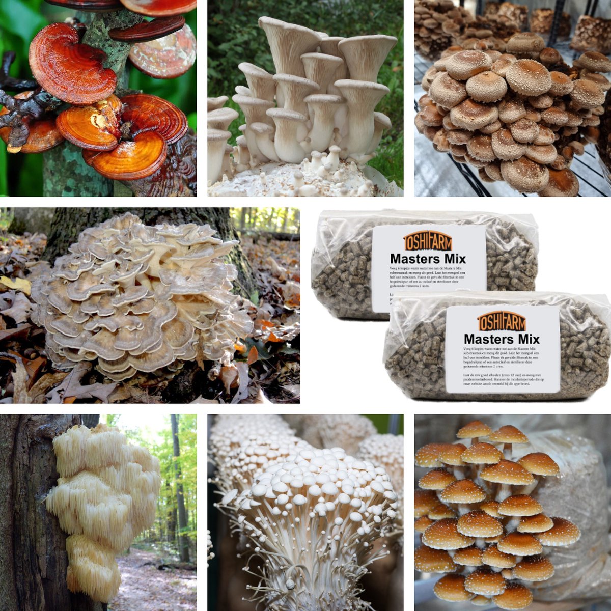 De ToshiFarm Health Special Pack 7 soorten broed voor paddenstoelen 2 autoclaafzakken met Masters Mix Startset bloeit Hele jaar.